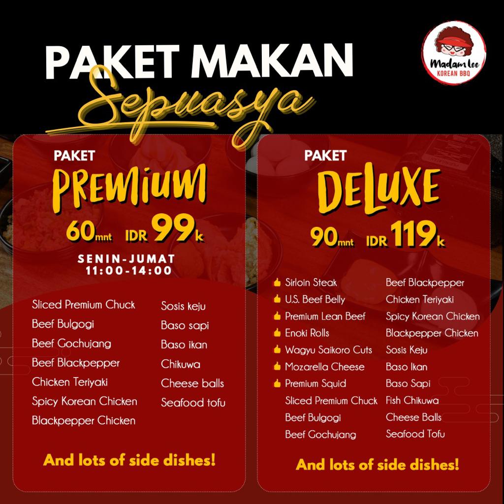 Introducing the Menu at Madam Lee Korean BBQ Tang City is a culinary journey that captures the essence of Korean barbecue. Nestled in Ruko Tang City, this restaurant offers an exceptional All-You-Can-Eat (AYCE) Deluxe Package that is sure to impress. Diners can indulge in a diverse selection of meats, including succulent steak, saikoro beef, and freshly grilled seafood like shrimp and squid. The experience is complemented by delightful sides such as flavorful sukiyaki and cheesy dishes that elevate your meal.